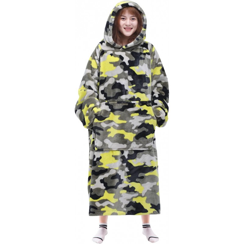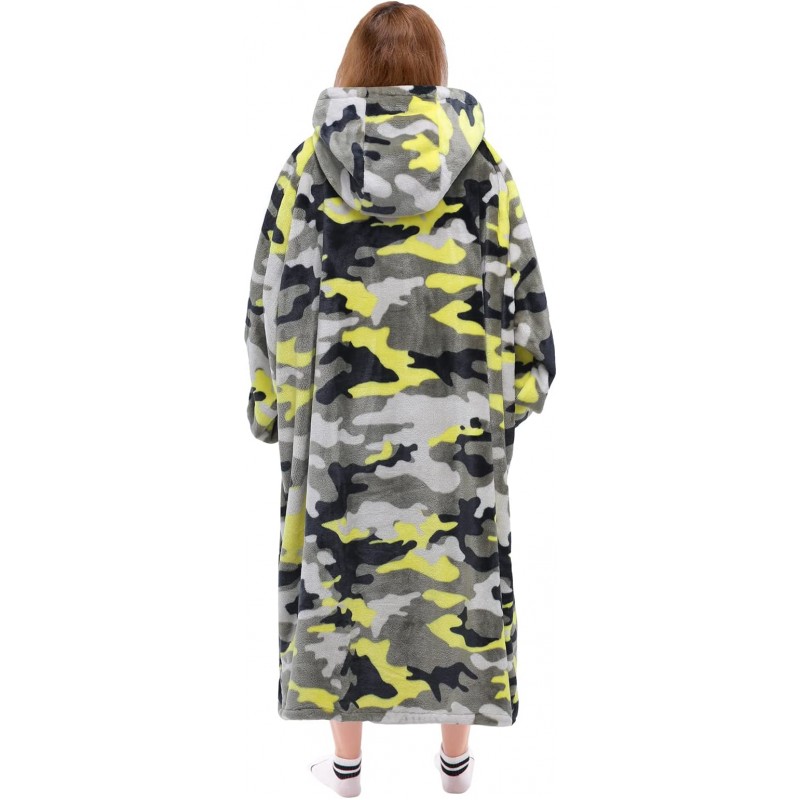 Camo Waitu Wearable Blanket Sweatshirt for Women and Men, Super Warm and Cozy Giant Blanket Hoodie, Thick Flannel Blanket with Sleeves and Giant Pocket - Gray