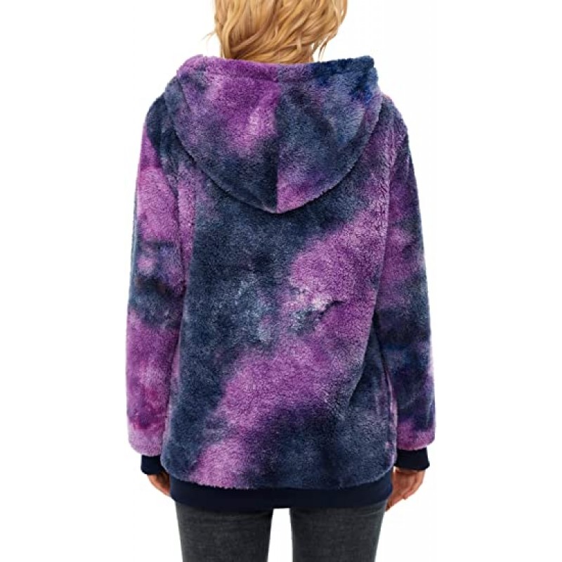 Y Blue Purple Tie Dye Women's Fuzzy Hoodies Sport Pullover Hoodie Athletic Cozy Oversized Pockets Hooded Sweatshirt Fleece Hoodies