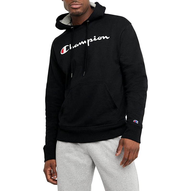 Black Men's Pullover Hoodie, Powerblend Fleece Midweight Hooded Sweatshirt For Men, Best Hoodies for Men, Script