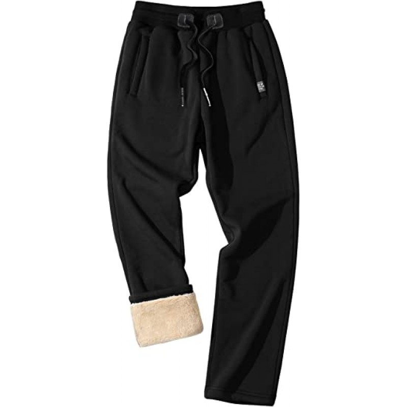black Men's Winter Fleece Pants Heavyweight Warm Sherpa Lined Sweatpants Running Jogger Pants with Pockets
